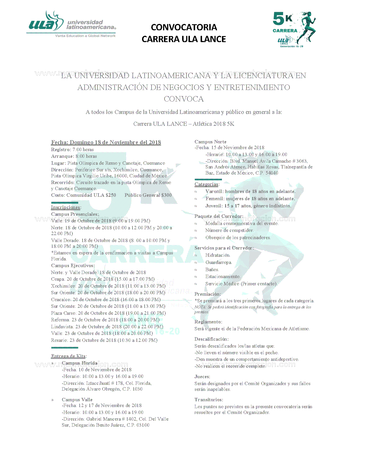 | 5K Juvenil | 15-17 Años | Mixto |